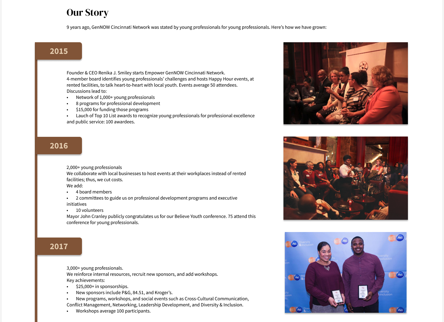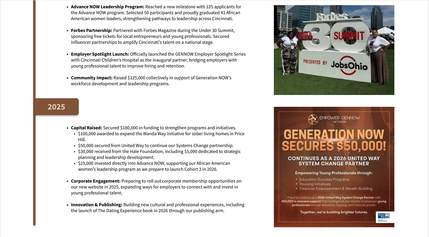 Since 2015, our 501(c)(3) nonprofit has been preparing young professionals in Greater Cincinnati for its diverse and inclusive workforce. One that will ensure equitable, sustainable economic development.